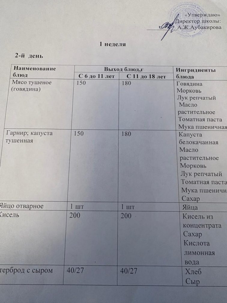 Бір күндік мәзір 02.12.2025ж.