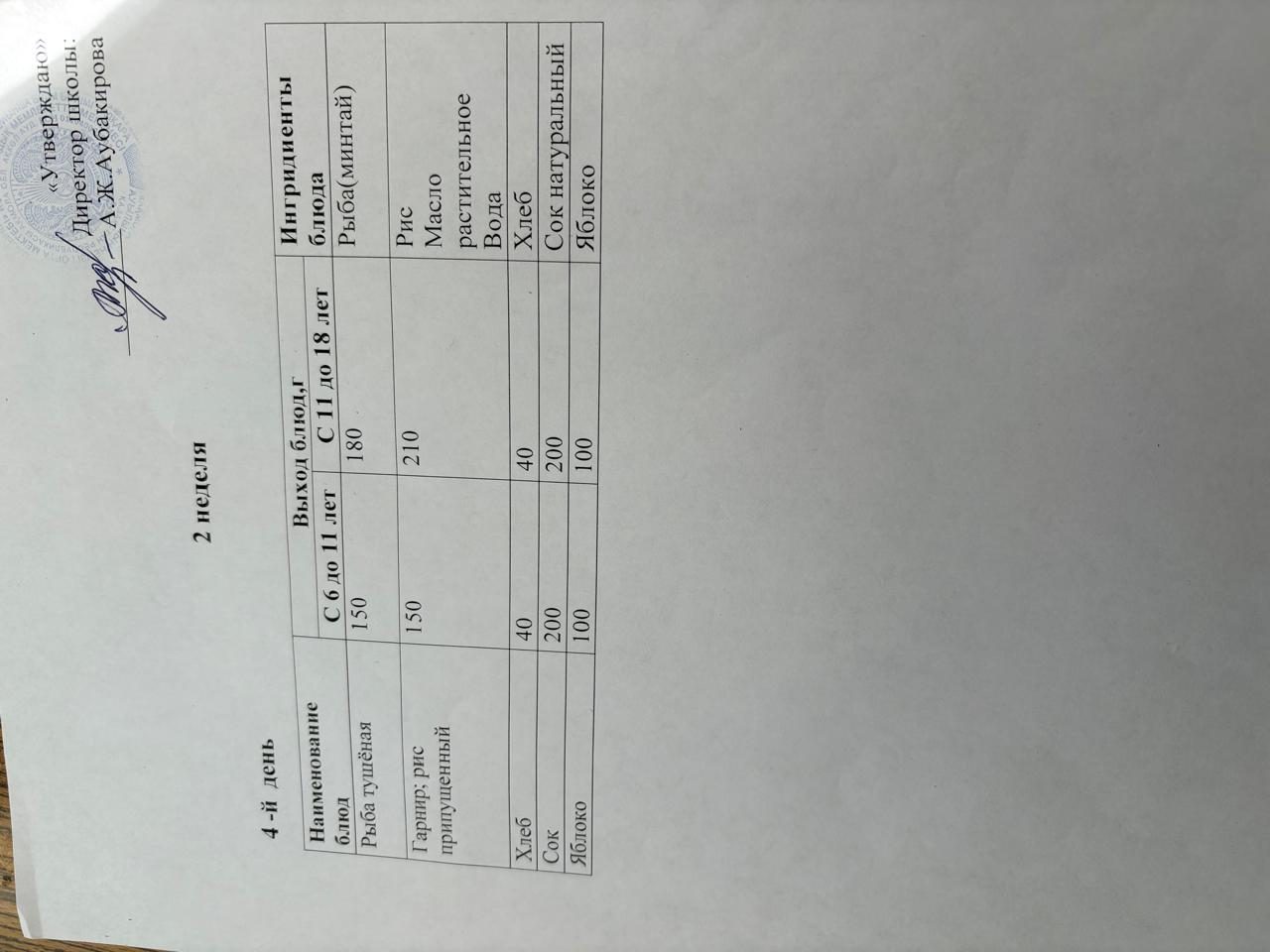Бір күндік мәзір 13.11.2025ж.