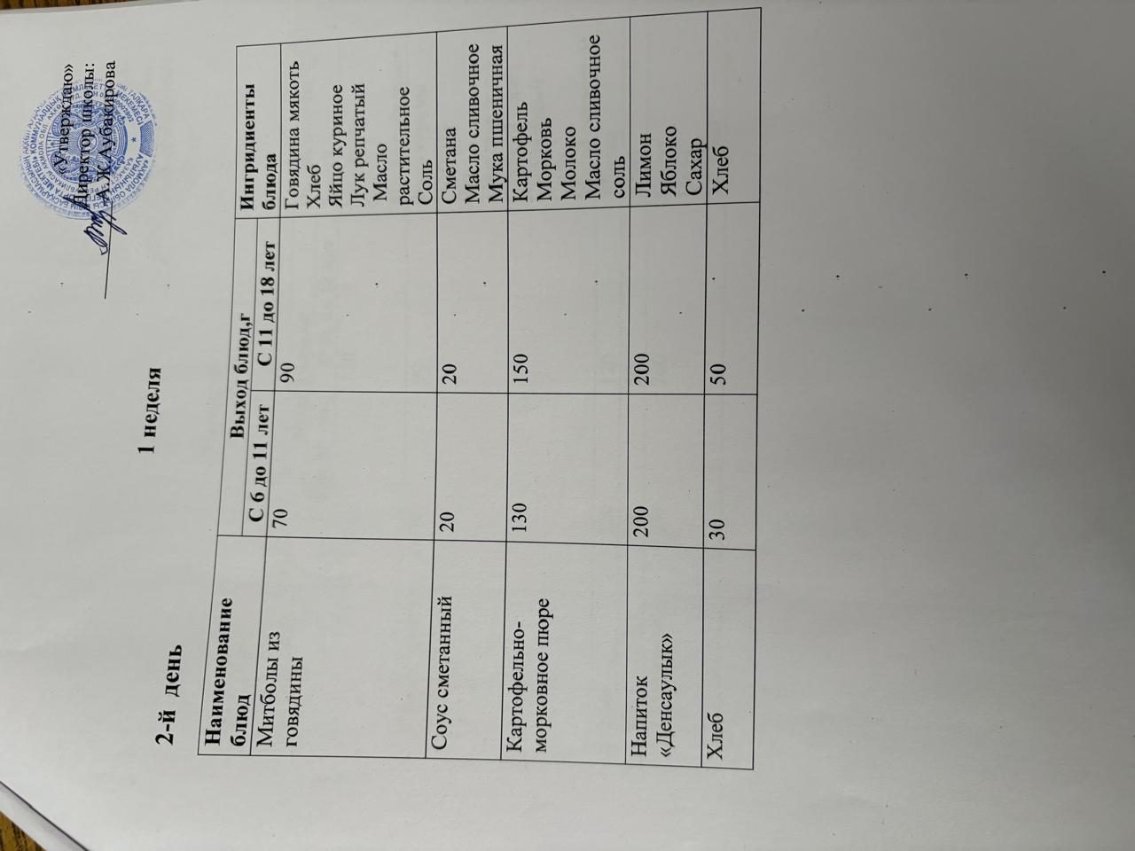 Бір күндік мәзір 17.02.2026ж.