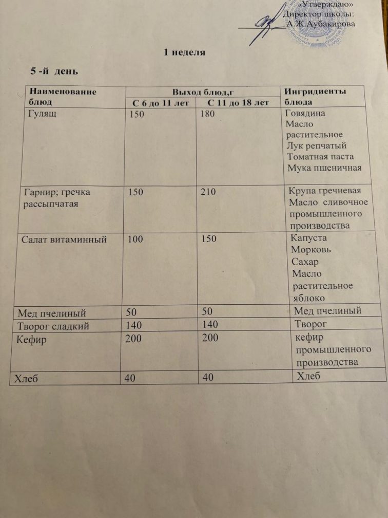 Бір күндік мәзір 19.12.2025ж.