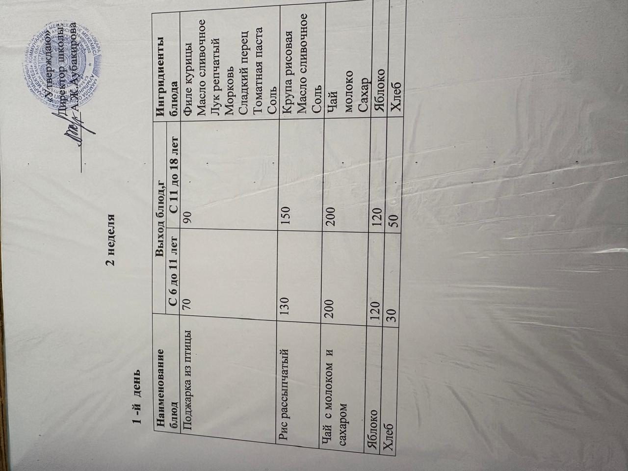 Бір күндік мәзір 23.02.2026ж.