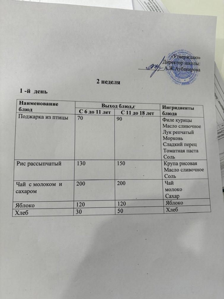 Бір күндік мәзір 26.01.2026ж.