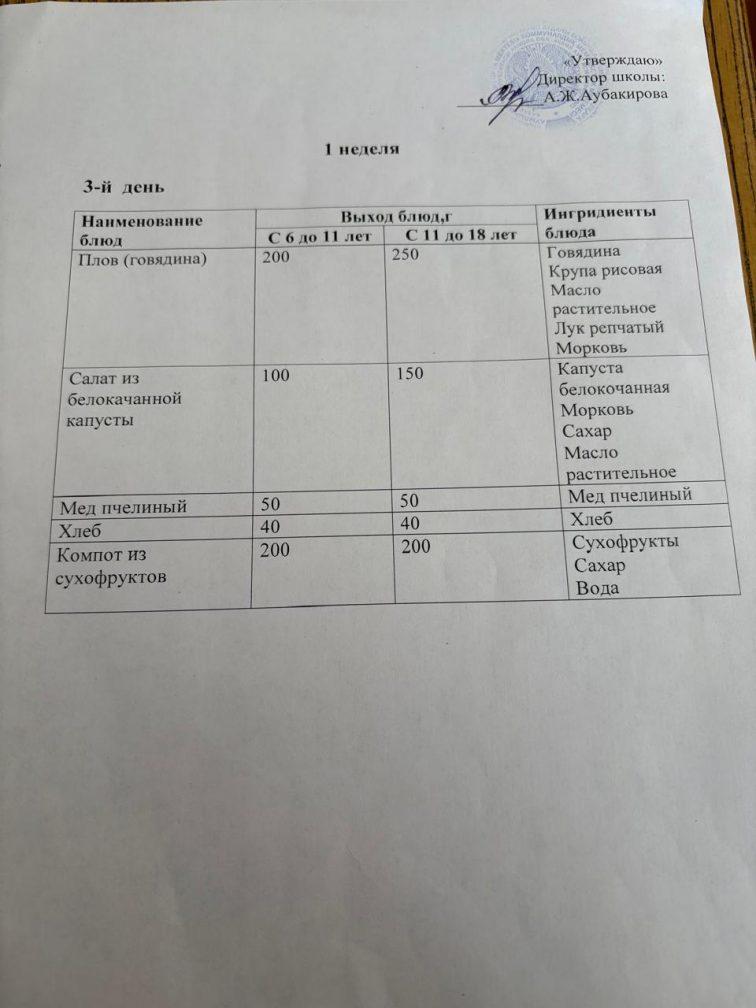 Бір күндік мәзір 5.11.2025ж.