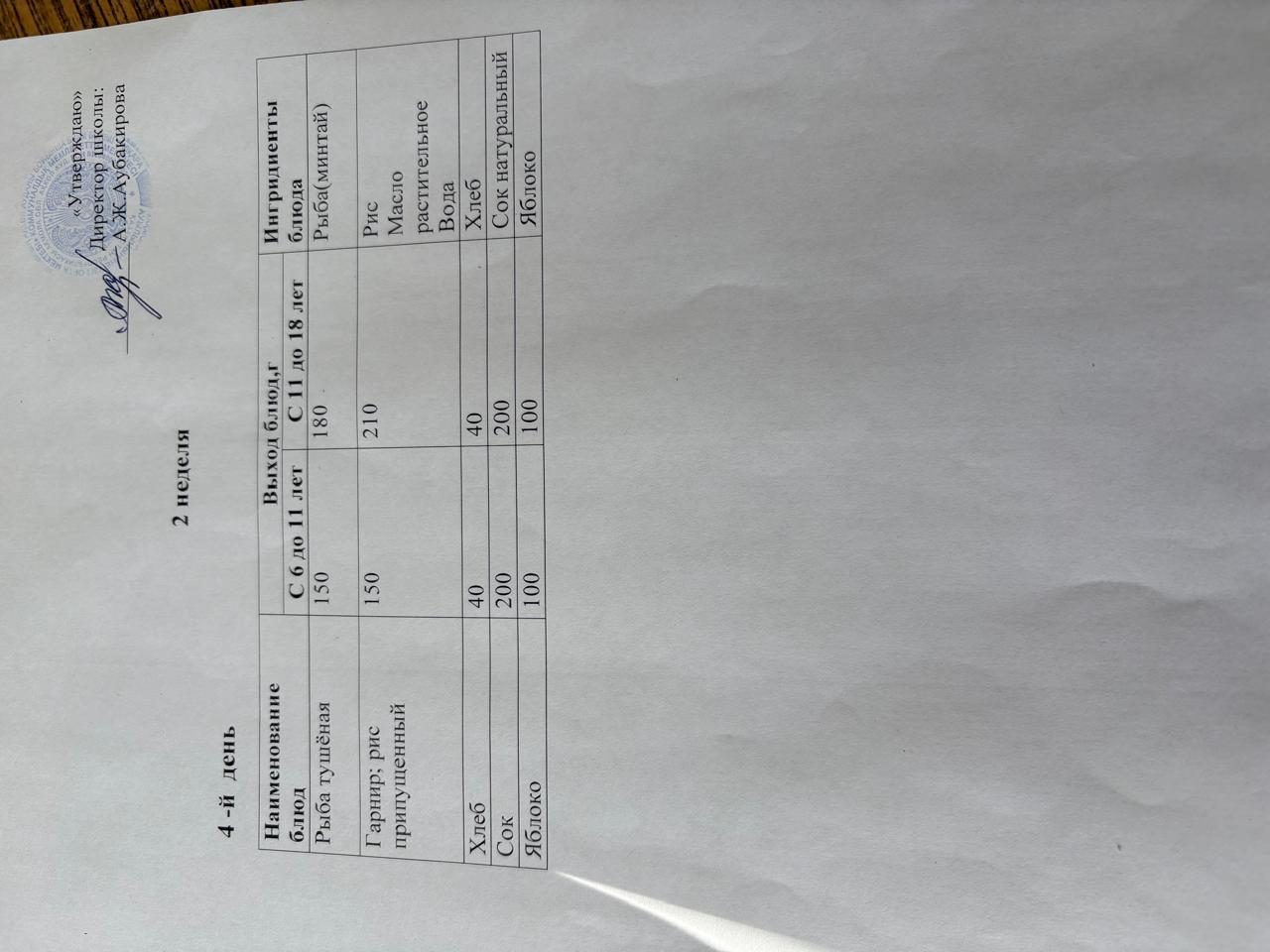 Бір күндік мәзір 9.10.2025 ж.