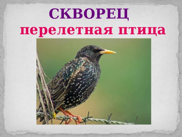 "Жұлдызқұрт-қоныс аударатын құс" Мақсаты: Жұлдызқұрт қоныс аударатын құс, оның өмір салты және ұшу себептері туралы түсінік қалыптастыру. Тапсырмалар: Білім беру: - жұлдызқұрттың сыртқы түрі мен ерекшеліктерімен таныстыру; - "қоныс аударатын құстар" ұғымын түсіндіру; - Табиғаттағы маусымдық өзгерістер туралы білімді бекіту. Дамыту: - сөйлеуді, зейінді, ойлауды дамыту; - сұрақтарға жауап беруге және қорытынды жасауға үйрету. Тәрбиелік: - табиғат пен құстарға деген сүйіспеншілік пен құрметке тәрбиелеу.