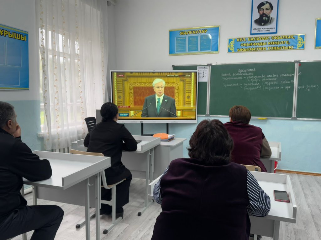 Жыл сайын жолдау — дәстүріміз, Сөзімен толғайды ел еріміз. Президент үн қатты халқымызға, Жетелейді бізді жарқын мұратқа. Мұғалім еңбегін ұмытпайды, Заңымен мәртебе нығайтпайды. Жалақы өсіп, қуантты бізді, Болашаққа бастар жолды түзді.