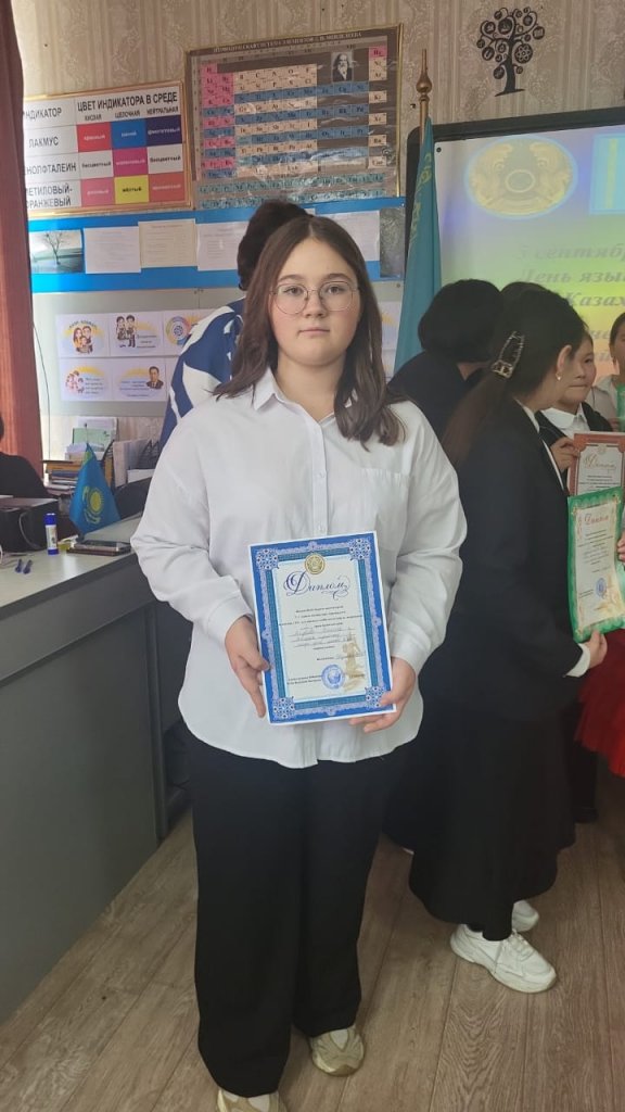 19.09.2025 жылы " Тілдер күніне "орай" Наумовка ауылының жалпы білім беретін мектебінде " шығармашылық конкурс өтті, оған біздің мектептің 9 — сынып оқушысы Якубова Таисия қатысты. Байқау қорытындысы бойынша Таисия Құрметті I орынға ие болды! Таисия мен Қазақ тілі мұғалімі Жұмабекова Урик Сағындыққызын лайықты жеңісімен құттықтаймыз және одан әрі шығармашылық табыс тілейміз!